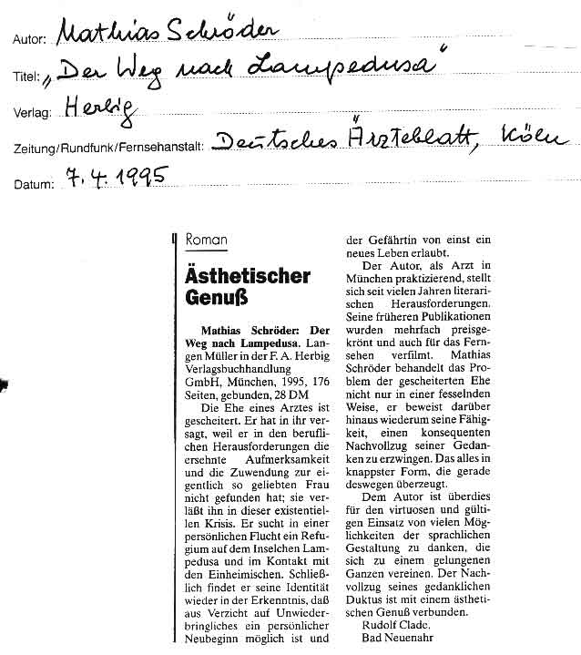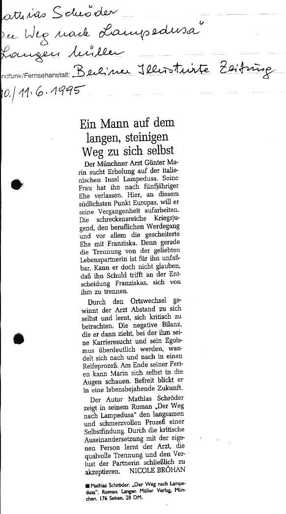 "Der Weg nach Lampedusa" 10.06.1995 Berliner Illustrierte Zeitung - 58kb "Der Weg nach Lampedusa" 07.04.1995 Deutsches Ärzteblatt - 55kb