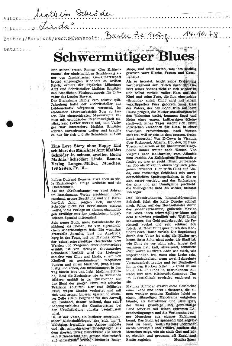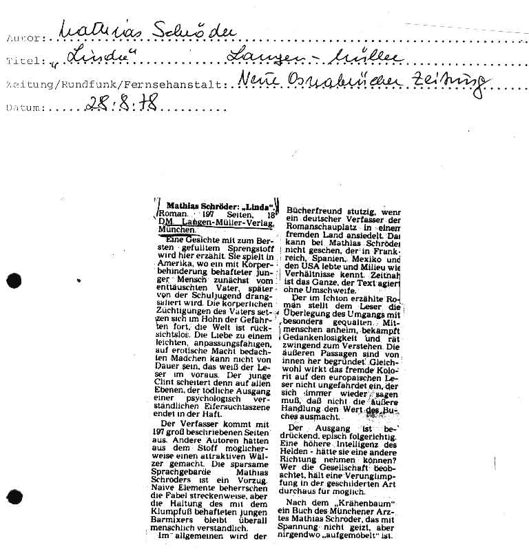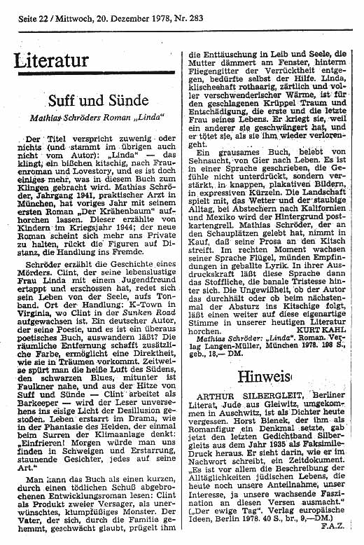 "Linda" 20.12.1978 Frankfurter Allgemeine Zeitung - 119kb "Linda" 14.10.1978 Basler Zeitung - 144kb "Linda" 28.08.1978 Neue Osnabrücker Zeitung - 71kb