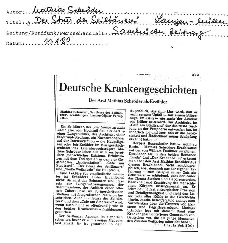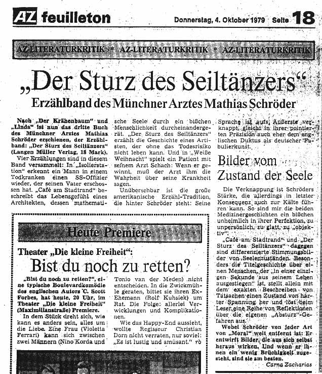 "Der Sturz des Seiltänzers" 11.01.1980 Saarbrücker Zeitung - 108kb "Der Sturz des Seiltänzers" 04.10.1979 Abendzeitung - 140kb